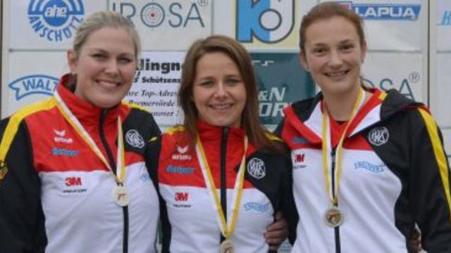 In der Besetzung Sandra Hornung (Regensburg/Foto rechts), Monika Karsch (Regensburg/Foto Mitte) und Stefanie Thurmann (Frankfurt/Oder/Foto links) gewann die Damen-Pistolenmannschaft der Bundeswehr bei den militärischen Weltspielen in Mungyeong (Südkorea) mit 1746 Ringen die Goldmedaille vor Russland (1737 Ringe) und China (1732 Ringe). Im Einzelwettbewerb, der morgen fortgeführt wird, stellte Stefanie Thurmann im Vorkampf mit 590 Ringen die CISM-Bestleistung ein.