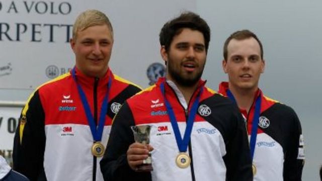 Das Juniorenteam des Deutschen Schützenbundes hat beim hochkarätig besuchten Grand Prix in Porpetto (Italien) die Mannschaftswertung für sich entschieden. In der Besetzung Yannik Hofmann (Worms/Foto Mitte), Tilo Fritze (Loitz/Foto links) und Vincent Haaga (Heringsdorf/Foto rechts) gewann die DSB-Mannschaft mit 354 Treffern vor Italien 1 mit 351 getroffenen Scheiben und Italien 2 mit 348 Treffern.