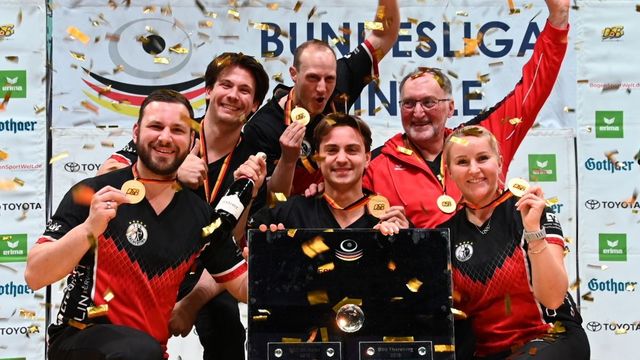 Kein Tag bei der U21 Druckluft-Europameisterschaft in Burgas/BUL (11. bis 15. Februar) ohne Medaille, und dieses Mal gab es gar einen Doppelsieg: Benedikt Ascher, der bereits Silber im Einzelwettbewerb gewann, sicherte sich durch ein 15:11 im Duell mit Luis Eichenseer den EM-Titel, der über Silber jubeln konnte.